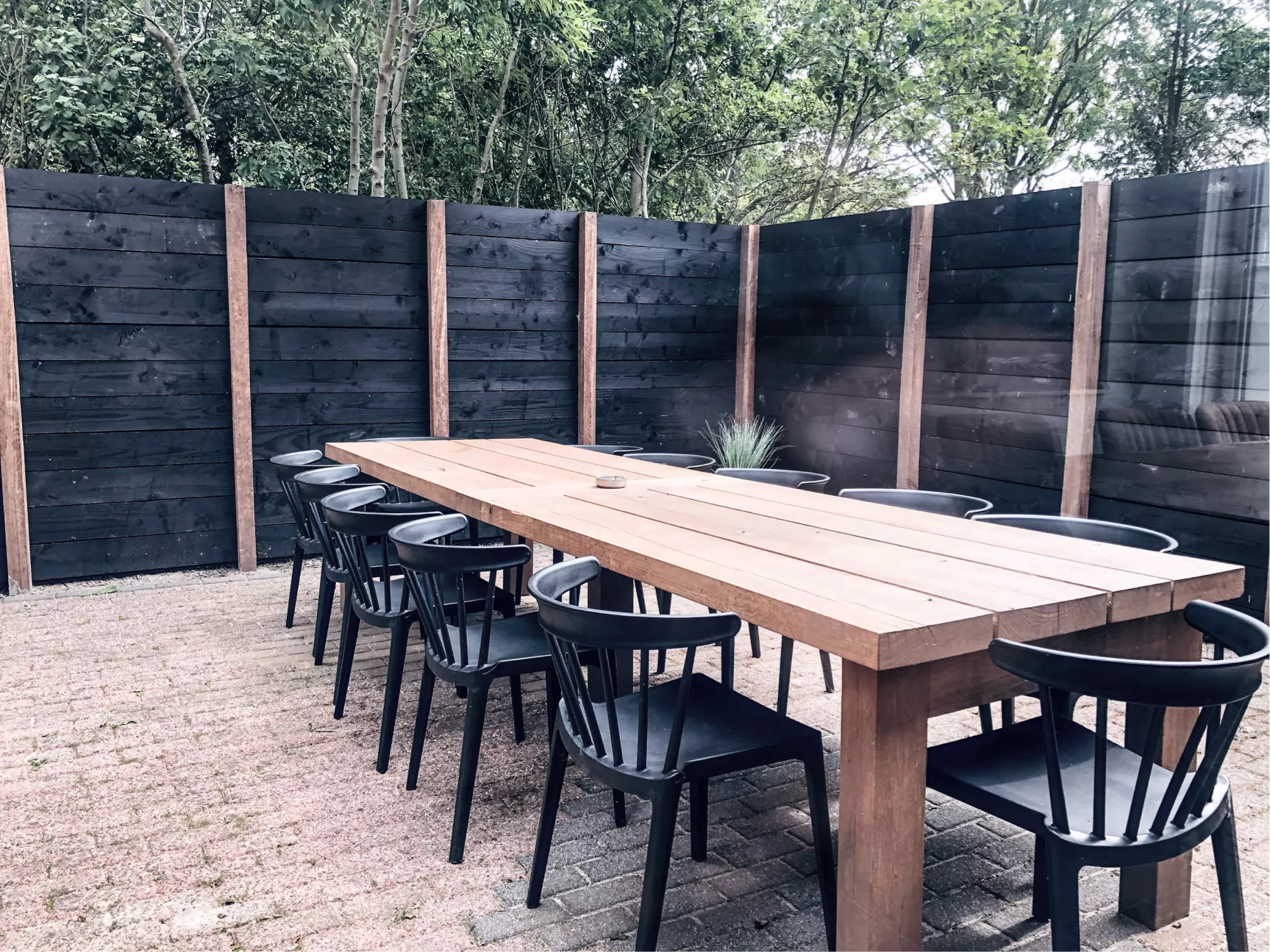 Sie betreten die Terrasse durch die Gartentüren im Essbereich. Auf der privaten Terrasse finden Sie einen großen Familientisch für 12 Personen, und während der wärmeren Tage des Jahres steht auch ein Grill zur Verfügung. Perfekt, um mit Freunden oder Familie zusammenzukommen – umgeben von Sonne, Grün und der frischen Texeler Seeluft. Genießen Sie Snacks und Getränke im Freien, während die Vögel – unsere treuen Stammgäste – fröhlich zwitschern.